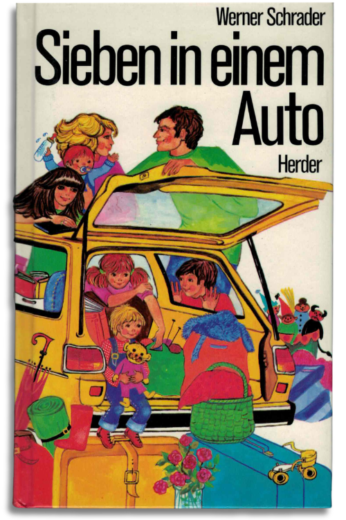 „Sieben in einem Auto“ erzählt von einer Großfamilie, die sich gemeinsam auf die Reise in den Urlaub macht. Schon das Kofferpacken wird zur Herausforderung, und unterwegs sorgen Kinder, Hund und allerlei Missgeschicke für unvorhersehbare Situationen. Grenzkontrollen, verlorene Nerven und ungebremste Neugier machen die Fahrt zu einem echten Abenteuer.